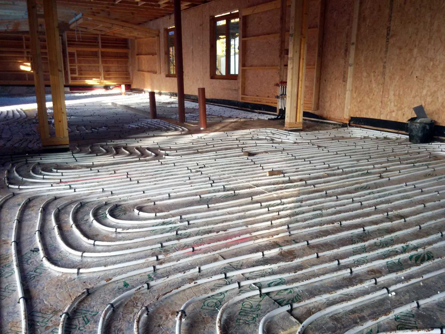 Extensive pipework has been laid in swirls for the underfloor heating ready for the screed to be laid.  It’s going to be cosy in there!