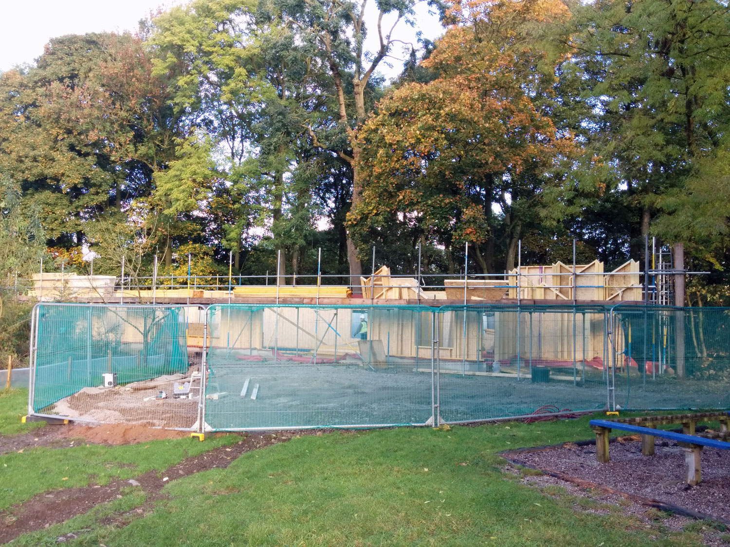 The roof is almost finished and it is really taking shape now.  New paving has been put down to link the new building to the main centre.  The electricity has been connected, ground source heating installed and the under floor heating system is now functional.